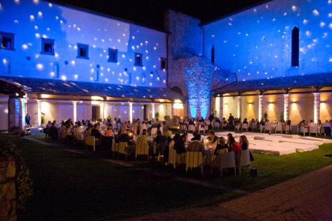Intorno ai grandi tavoli apparecchiati sul prato del chiostro si sono ritrovate quasi 160 persone e le mistiche mura, per la prima volta nella loro ultracentenaria storia, hanno assistito ad un evento enogastronomico innovativo, pennellato di luci artistiche.