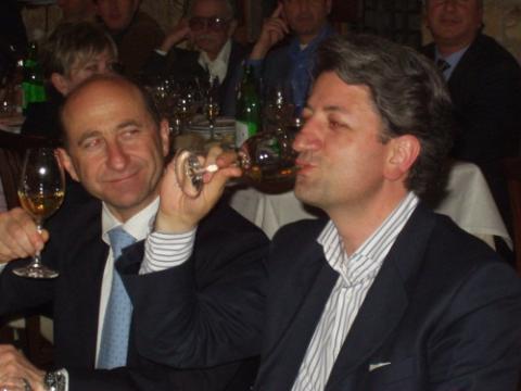 Presenti alla serata Alberto Corsetti, titolare dell'omonima enoteca che ha contribuito alla scelta dei vini, ed anche il produttore Giampaolo Tabarrini che, nonostante fosse in partenza per Oslo, non ha rinunciato ad offrire personalmente un interessantissimo Trebbiano 2005, vino con solide radici nella tradizione ma squisitamente proiettato verso il futuro.